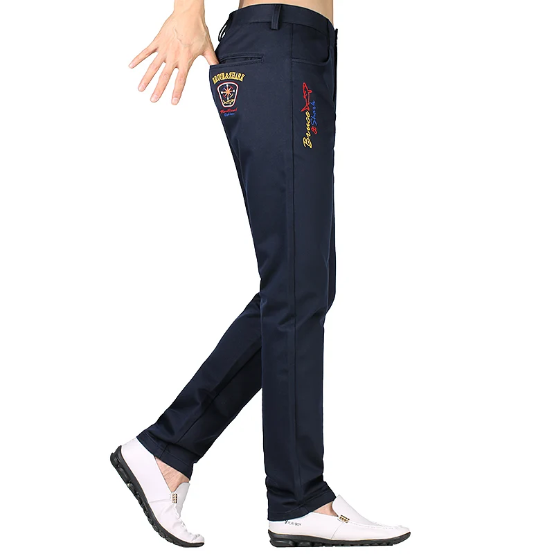 Winter Pants Men Classic Casual Long Trousers Streching cotton straight Leg embroidery warm Work Pant thick mens size 28 to 40