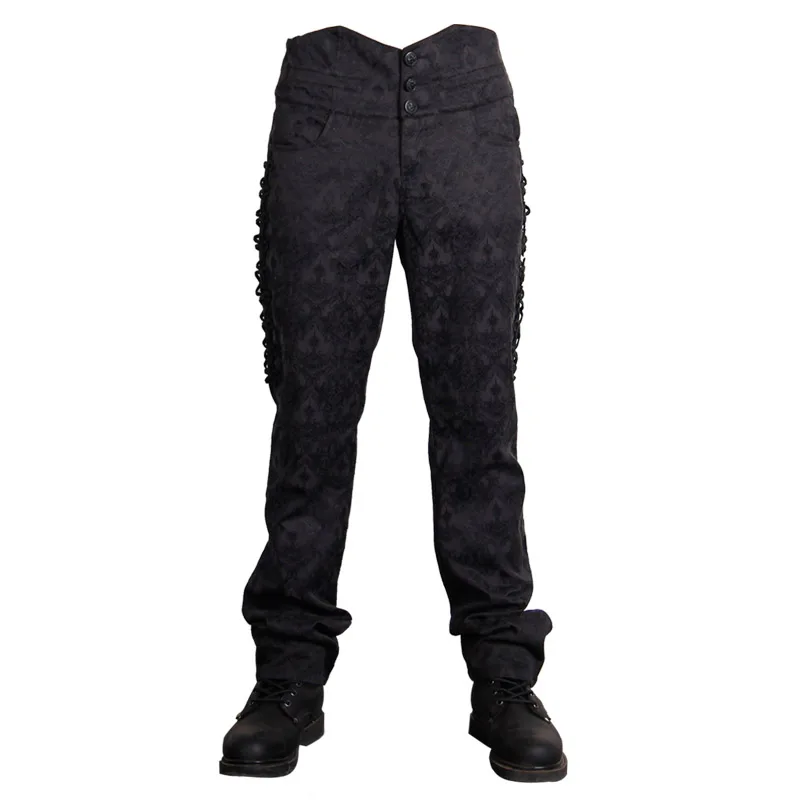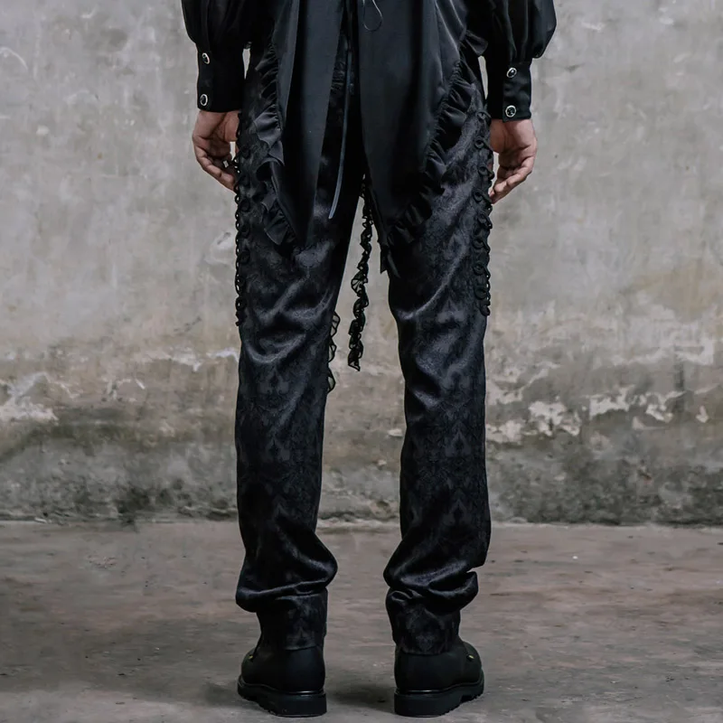 | Devil Fashion Victorian Gothic Black Soft Male High Waisted Trousers Man Retro Lolita Lace Up Long Pants Embroidered Detailing |