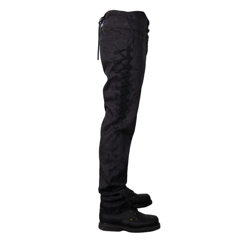 Best Price Comparison With Devil Fashion Victorian Gothic Black Soft Male High Waisted Trousers Man Retro Lolita Lace Up Long Pants Embroidered Detailing