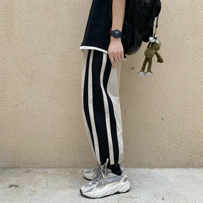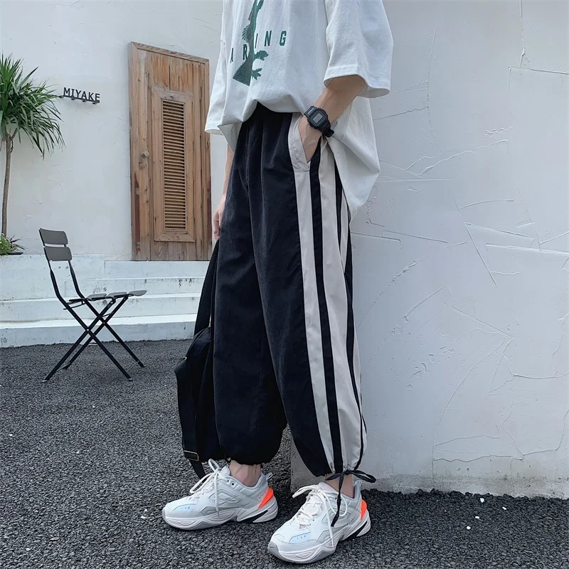 | 2019 Summer mens casual Korean version of the wild elastic waist loose nine points beam foot sports pants hip hop Black |